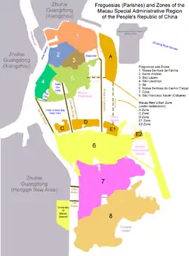 | 2 | Санту-Антониу (Santo António) | 1,1 | 112 900 | 10 | Zona de Administração de Macau na llha Fronteiriça Artificial da Ponte Hong Kong-Zhuhai-Macau | 0,7 | ||