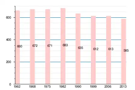 Население коммуны в 2011 году составляло 599 человек[6], в 2012 году — 592 человека[7], а в 2013-м — 585 человек[5].