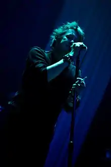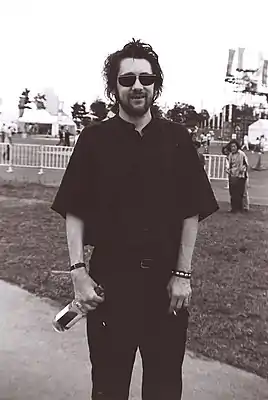 ![]() Шейн на музыкальном фестивале в Йокогаме с бутылкой виски в руке | |