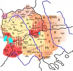 В македонском языке выделяются три диалекта: северномакедонский, западномакедонский и юго-восточный македонский (восточномакедонский)[6][10][11].