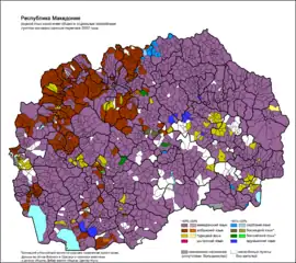 Македо́нский язы́к (самоназвание: македонски јазик) — язык македонцев, один из славянских языков. В генетическом плане наиболее близок болгарскому языку, вместе с которым образует восточную подгруппу в рамках южнославянской языковой группы. По типологическим особенностям схож с языками балканского союза[4][5][6]. Распространён преимущественно в Северной Македонии, небольшие группы носителей македонского живут также в Албании, Болгарии, Греции, Сербии, Хорватии, в ряде стран Западной Европы, в США, Канаде, Австралии и других странах[3][7]. Македонский является официальным языком Северной Македонии (с 1991 года). Выполняет некоторые официальные функции в Албании[1]. В Боснии и Герцеговине и Румынии для македонского предусмотрена возможность получения статуса регионального языка[2].