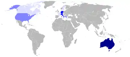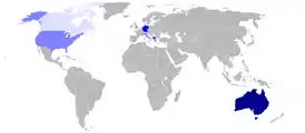 Северная Македония; Албания, Болгария, Греция, Сербия, Хорватия; страны Западной Европы; США, Канада; Австралия |