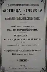 В XIX веке представителями македонской интеллигенции предлагалось несколько альтернативных названий для языка славян Македонии, например такие, как славяноболгарский / славено-болгарский, македоноболгарский, славяномакедонский / словеномакедонский и т. п. Все эти названия были малоизвестными и не получили хоть сколько-нибудь заметного распространения среди македонцев[20].