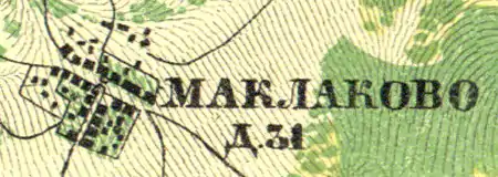 МАКЛАКОВО — деревня владельческая при колодцах, число дворов — 33, число жителей: 94 м. п., 79 ж. п. (1862 год)[12]