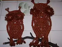 Макраме́ (фр. macramé, от араб. مقرمة «тесьма, бахрома, кружево» или с тур. — «шарф или салфетка с бахромой») — техника узелкового плетения. Разновидность прикладного искусства.