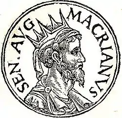 ![]() Портрет Макриана Старшего в форме монеты из Promptuarii Iconum Insigniorum — сборника биографий, изданного в 1553 году. | |