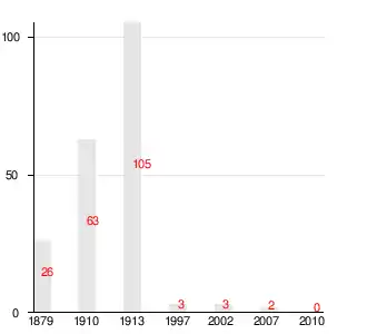 Число жителей по семейным спискам 1879 г.: 12 м. п., 14 ж. п.; по приходским сведениям 1879 г.: 12 м. п., 14 ж. п.[2]