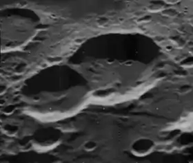 ![]() Кратеры Мак-Найр (слева) и Ярвис (справа). Снимок зонда Lunar Orbiter-V. | |