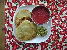 Малауах, поданный со схугом и соусом из измельчённых помидоров