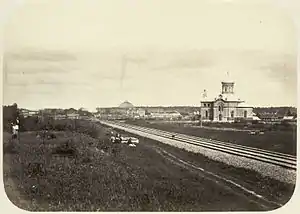 Первой постройкой Малой Вишеры принято считать казённую избу для приказчика, десятника и других распорядителей строительства этого участка Николаевской железной дороги, выстроенную в 1843 году артелью крепостных крестьян на берегу реки Малая Вишера. В 1851 году было выстроено здание железнодорожного вокзала высшего разряда по проекту архитектора Р. А. Желязевича.