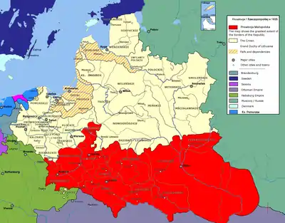 Современное Малопольское воеводство не совпадает в границах с исторической Малой Польшей, охватывая лишь её юго-западную часть[1] и составляя лишь её малую часть. Малая Польша простиралась от Бельско-Бялы на юго-западе до Седльце на северо-востоке[2] и состояла в Польском королевстве из трёх воеводств: Краковского, Сандомирского и Люблинского.