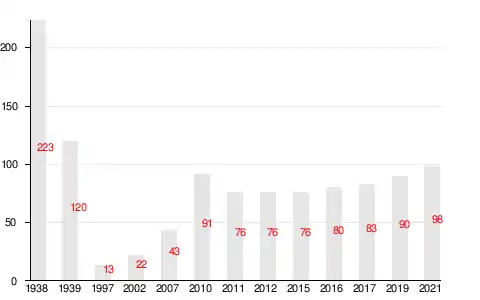 | 1939 | 1997 | 2002 | 2007[13] | 2010[14] | 2011 | 2012[15] |