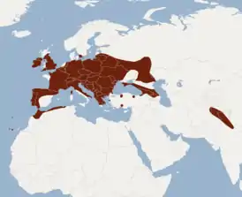 Водится на территории от Западной и Центральной Европы до Афганистана и Кашмира. В России встречается на юго-западе страны, на Кавказе и Алтае. Предпочитает старые высокоствольные широколиственные и смешанные леса, где имеются луговые пространства и водоёмы. Может совершать сезонные миграции порядка 1000 километров. Вид редок на протяжении всего ареала.