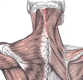 | Начало | выйная связка, остистые отростки C7 — T1 позвонков |