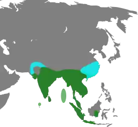Эти утки встречаются в пресноводных водоёмах от Пакистана на западе до островов Индонезии на востоке. А именно в Индии, Непале, Шри-Ланке, Бангладеш, Мьянме, Таиланде, Малайзии, Сингапуре, на юге Китая, во Вьетнаме.