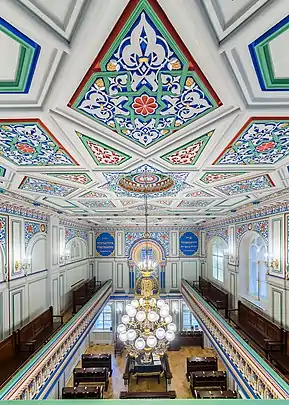 Малая синагога — самая старая синагога Санкт-Петербурга, построена архитектором И. И. Шапошниковым, художник — Лев Исаакович Бахман.