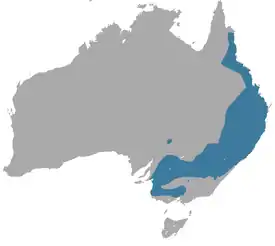 Обитает в восточной части Австралии, встречаясь от юго-восточной оконечности материка до северо-восточной части штата Квинсленд. Естественная среда обитания — редколесья, окраина влажных тропических лесов[3]. В северной и южной части штата Виктория селится в вересковых пустошах и районах, покрытых низкорослым эвкалиптом, в южной — в сухих редкостойных лесах с низким подлеском[4].