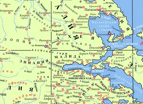 Соседними с малиями были локры эпикнемидские, этейцы[3]. Вместе с фтиотийскими ахейцами малии занимали области напротив Эвбеи[4] и около Фермопил[1]. Энианы, оттеснённые лапифами на гору Эта, потеснили малиев до Гераклеи (прежде Трахин) и Эхина[5].