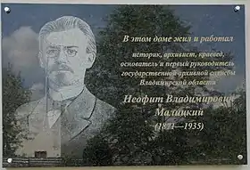 - Малицкий Неофит Владимирович: Выставка документов Государственного архива Владимирской области к 140-летию со дня рождения. (недоступная ссылка). Дата обращения: 25 июля 2016. Архивировано 4 марта 2016 года.