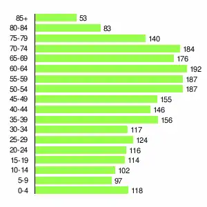 | Жителей | 3644 | 3311 | 3744 | 4804 | 4233 | 4099 | 3831 | 2946 | 2447 |