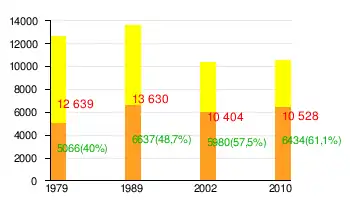| Русские | 11 286 (58,3 %) | 4 312 (40,6 %) | |