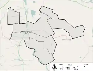 | 10 | Ханатинский[8] | посёлок Ханата, всего 19 населённых пунктов | |