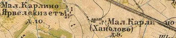В 1885 году деревня Малое Карлино (Ханолово) насчитывала 9 дворов, а Малое Карлино (Ярвелекизет) — 10[11].