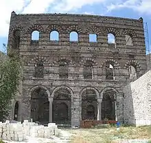 Малый Влахернский дворец, видный сзади со Стенами Феодосия впереди