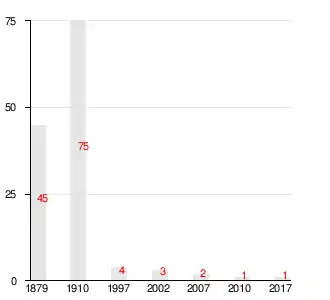 Число жителей по семейным спискам 1879 г.: 24 м. п., 21 ж. п.; по приходским сведениям 1879 г.: 28 м. п., 19 ж. п.[2]