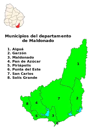 Департамент Мальдонадо делится на 8 муниципалитетов: