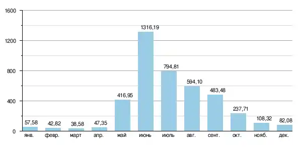 | Расход воды | 354 м³/с (34 км от устья) |