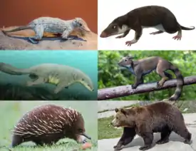 Маммалиаформы[2] (лат. Mammaliaformes) — клада, включающая млекопитающих и их ближайших вымерших родственников. Сформировалась в результате радиации цинодонтов из группы Probainognathia[3]. Кроме млекопитающих, в состав маммалиаформ включают мезозойские отряды морганукодонтов, докодонтов, годванотерий, харамиид, а также некоторые базальные роды. Древнейший известный представитель — Tikitherium copei (отложения верхнего триаса с территории Индии). Происхождение кроновой группы млекопитающих восходит к юрскому периоду, в частности к многочисленным находкам в верхнеюрских обнажениях Португалии и Китая.