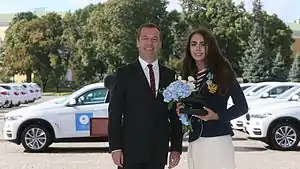 - Орден Дружбы (25 августа 2016 года) — за высокие спортивные достижения на Играх XXXI Олимпиады 2016 года в городе Рио‑де-Жанейро (Бразилия), проявленные волю к победе, стойкость и целеустремлённость, большой вклад в развитие отечественного спорта[48].