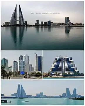 В столице Бахрейна находится большое количество небоскрёбов, среди которых выделяется своей необычностью Бахрейнский всемирный торговый центр. С лежащим к северо-востоку островом Мухаррак, на котором расположен международный аэропорт Бахрейна, город соединяет шоссе протяжённостью 2,5 км, проложенное по дамбе[3]. Также планируется постройка метрополитена, который, проходя через центр города, свяжет аэропорт с южными районами города[4].