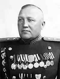 После окончания войны находился на прежней должности в составе Группы советских войск в Германии. В сентябре 1946 года был назначен на должность командира 34-й пушечной артиллерийской дивизии.