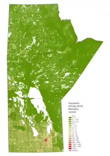 У провинции есть морская береговая линия по Гудзонову заливу, более 110 тысяч озёр занимают около 15,6 % территории, или 101 593 км² поверхности[5]. Основными озёрами Манитобы являются озеро Манитоба, Виннипегозис и озеро Виннипег, десятое по величине пресноводное озеро в мире[6]. Некоторые земли индейцев и тайга на восточной стороне озера Виннипег являются кандидатами в список Всемирного наследия ЮНЕСКО[7]. Крупнейшие реки провинции — Ред-Ривер, Ассинибойн, Нельсон, Виннипег, Хейс, Уайтшелл и Черчилл. Значительные территории заселённого юга провинции когда-то были частью доисторического ледникового озера Агассис. В этом регионе, в частности, в долине Ред-Ривер, местность плоская и плодородная; есть холмистые и каменистые участки на всей территории края, которые были оставлены отступающими ледниками[8][9].