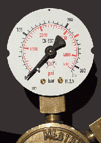 - кислородные — должны быть обезжирены, так как иногда даже незначительное загрязнение механизма при контакте с чистым кислородом может привести к возгоранию. Часто выпускаются в корпусах голубого цвета с обозначением на циферблате О2 (кислород);