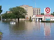 Жители катаются на лодках по Калумет-авеню после удара урагана Айк.