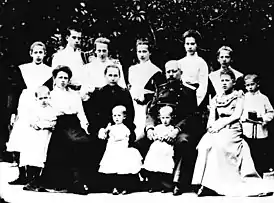 ![]() На переднем плане младшие дочери Н. Э. Мантейфель, Мария Николаевна Мантейфель (Тарасова) и Ирина Николаевна Мантейфель.[2] | |