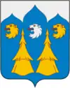 - В лазоревом поле на сплавляемом по серебряным волнам золотом суковатом бревне восстающий грифон того же металла с червлёными глазами и языком, имеющий все четыре лапы наподобие львиных и с черными когтями; грифон правит при помощи золотого шеста, держа его передними лапами.