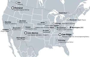 28 декабря 1942 года президент Рузвельт подписал распоряжение о строительстве заводов по обогащению урана методом газовой диффузии и электромагнитным методом, а также завода по производству плутония[16].