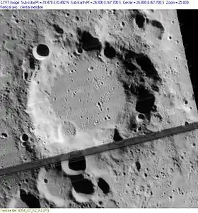 ![]() Снимок зонда Lunar Orbiter - IV. Полоса на снимке – артефакт изображения. | |