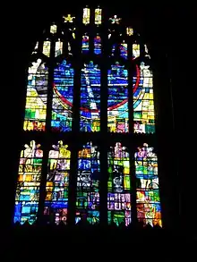 Все викторианские витражи уничтожены взрывом немецкой авиабомбы в 1940 году, и до конца 1960-х были изготовлены витражи только для двух окон, в частности, окно Огня (Margaret Traherne, 1966). Затем общий план возвращения витражей был подготовлен Тони Холлэуэем, который изготовил окна св. Георгия (1973), св. Дионисия (1976), св. Марии (1980), Творения (1991) и Апокалипсис (1995). В ознаменование завершённой реставрации после теракта IRA (1996) изготовлено окно Исцеления (Linda Walton, 2004).