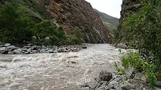 Мараньон между районами Чавин-де-Париарка (слева) и Синга (справа), Уамальес, Уануко.