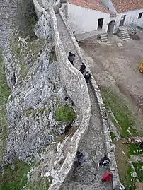 Многочисленные внутренние узкие проходы с поворотами были приспособлены для защиты от врагов, в случае если бы им удалось прорваться в крепость.