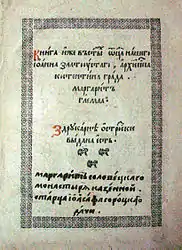 - Иоанн Златоуст. Маргарит. — 1.XI.1641 (18.XI.7149— 1.XI.7150). Михаил. Иоасаф I. (переиздание типографии единоверцев при Свято-Троицкой Введенской церкви. Москва, 1900 год).