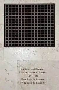 - Marguerite d’Écosse (1424 — 16 août 1445). Église abbatiale Saint-Laon de Thouars. www.tombes-sepultures.com. — Tombes et sepultures dans les cimetieres et autres lieux. Дата обращения: 29 декабря 2016. (фр.)