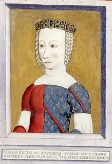 Маргарита де Бурбон, сеньора д’Альбре (1344—1416) — дочь Пьера I де Бурбона и Изабеллы де Валуа. Член дома Бурбонов.