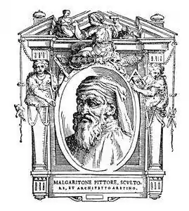 Джорджо Вазари оставил об этом мастере довольно подробное жизнеописание. Из него следует, что Маргаритоне был известным художником и скульптором, который работал в 1260—70х годах в Ареццо и окрестностях, расписывал церкви, и оставил в наследство множество прекрасных картин написанных в греческой манере. Вазари описывает Маргаритоне, как художника жившего до появления выдающихся итальянских мастеров – Чимабуэ, Андреа Тафи, Гаддо Гадди и Джотто, идеализируя его, и приписывая ему целый ряд произведений вплоть до скульптуры и архитектурных работ. Позднейшая критика называла этого художника посредственным, а славословия Вазари объясняла исключительно тем, что Вазари, как и Маргаритоне, родился в Ареццо, то есть местечковым патриотизмом.