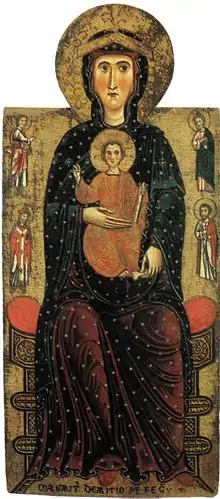 - 8. Мадонна с младенцем на троне. Происходит из ц. Санта Мария а Монтелунго. Ок. 1250г. Гос. Музей старинного и современного искусства, Ареццо.
